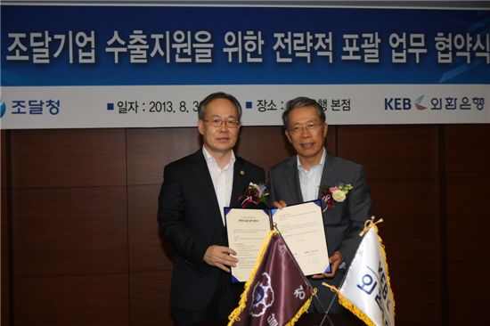 민형종 조달청장과 윤용로 외환은행장은 30일 외환은행 본점에서 ‘우수조달기업 수출지원을 위한 전략적 업무협약(MOU)’을 맺고 우수조달기업에 대한 체계적인 금융지원을 합의했다.