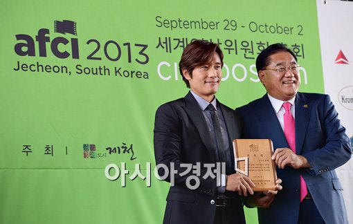 [아시아경제 송재원 기자] 배우 이병헌, 최명현 제천시장이 4일 오후 서울 동작구 사당동 아트나인에서 열린 제38회 세계영상위원회 총회 홍보대사 위촉식에 참석해 포토타임을 갖고 있다.
