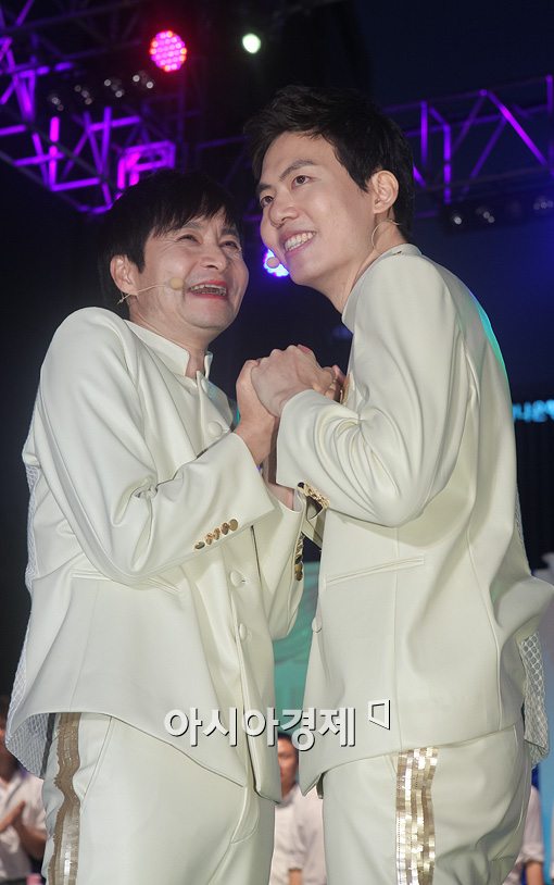 [아시아경제 정준영 기자] 영화감독 김조광수와 김승환 레인보우팩토리 대표가 7일 오후 서울 중구 남대문로 청계천광교에서 열린 결혼식에 참석해 두 손을 잡고 .