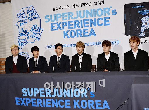 [아시아경제 송재원 기자] 그룹 슈퍼주니어가 11일 오후 서울 영등포 타임스퀘어에서 열린 ‘슈퍼주니어's 익스피리언스 코리아’ 출간 기념 기자간담회에 참석해 소감을 말하고 있다.