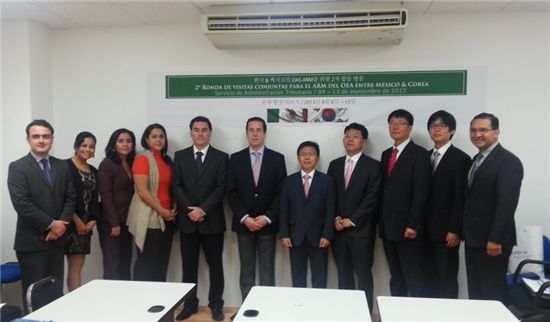 우리 대표단(단장 : 노석환 관세청 심사정책국장)은 이에 앞서 지난 12일 멕시코시티에 있는 코트라(KOTRA), 삼성물산, 효성, 포스코 등 10여 현지진출기업 및 수출지원단체들과 간담회를 갖고 한·멕시코 AEO MRA 효과 극대화를 위한 의견을 들었다.