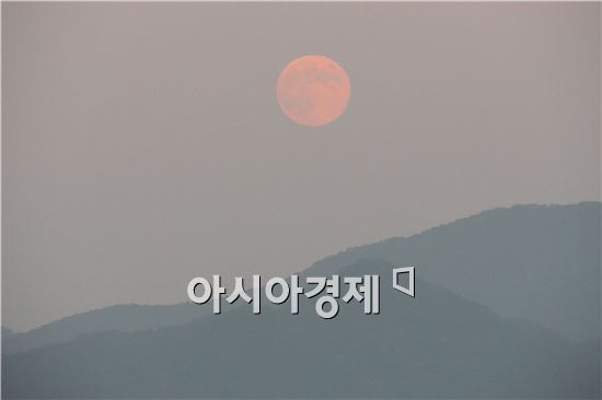 [아시아경제 노해섭 기자]올 한가위 보름달이 광주시가지 산등성이 올라왔다.