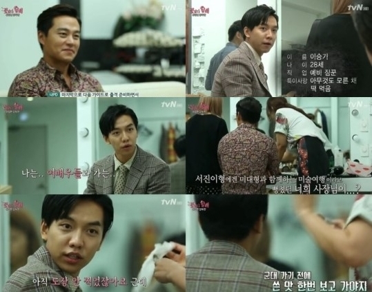 이승기는 이서진의 짐꾼 여행담에 "내가 가는 여행은 '꽃보다 할배'와 다른 콘셉트의 여행 아니냐. 아니 내가 개도 아니고"라고 말했다.
