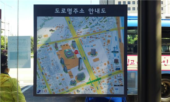 [아시아경제 박종일 기자]강남구의 버스정류장에 가면 주변 도로명주소를 한 눈에 볼 수 있다.
