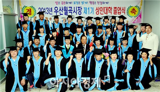 [아시아경제 노해섭 기자]광주시 광산구(구청장 민형배)는 지난 14일 월곡1동 월곡시장 내 교육장에서 시장상인 40여 명이 참가한 가운데 ‘2013년 월곡시장 제1기 상인대학’ 졸업식을 열었다.
