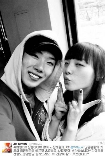 이는 조권이 선예 득녀를 축하하기 위한 메세지로 사진 속 두 사람은 다정한 포즈를 취하고 있는 모습이 담겨있다.