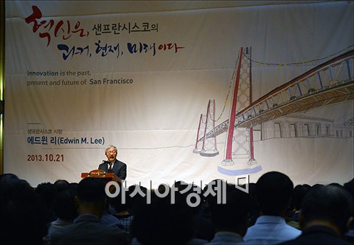 [아시아경제 윤동주 기자] 21일 서울시청에서 에드윈 리 미국 샌프란시스코 시장이 박원순 서울시장등 시 공무원들을 대상으로 '혁신은 샌프란시스코의 과거, 현.