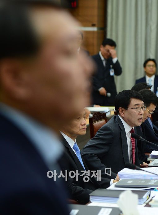 [아시아경제 백소아 기자] 21일 서울 서초구 서울고등검찰청에서 열린 국회 법제사법위원회의 서울중앙지방검찰청과 수원지방검찰청 등 서울고등검찰청 산하 일선 검찰청에 대한 국정검사에서 국정원 대선 개입 사건의 특별수사팀장이었던 윤석열 여주지청장이 증인으로 선 가운데 조영곤 서울중앙지검장이 답변을 하고 있다.