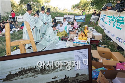 [아시아경제 윤동주 기자] 밤섬 실향민들이 23일 서울 밤섬을 찾아 귀향제를 지내고 있다. 밤섬은 1960년대까지만 해도 주민들이 거주하던 지역이었는데 1968년 한강 개발과 여의도 건설 일환으로 밤섬이 폭파되면서 당시 밤섬에 거주하던 62가구 443명의 주민은 마포구 창전동 소재 와우산 기슭으로 이주했다.