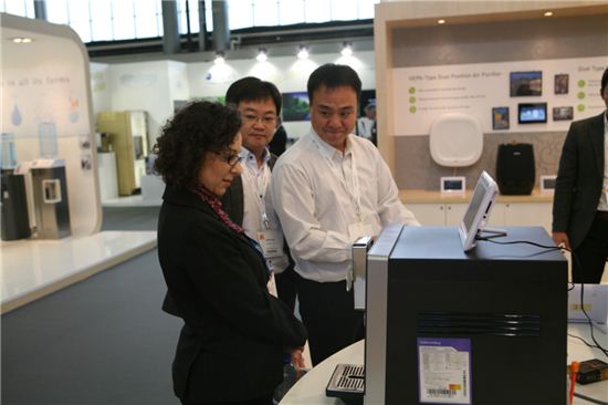올해로 6번째 참가하는 코웨이는 이번 전시에서 '코웨이 혁신기술을 세계에 알리다'라는 콘셉트로 정수기 시장 형성 측면에서 초기 단계인 유럽시장을 공략ㆍ선점 하기 위해 나선다. 한뼘정수기(CHP-241N)ㆍ다빈치정수기 (CHP-010E)를 비롯해 스스로살균 얼음정수기(CHPI-280L)를 선보인다.
