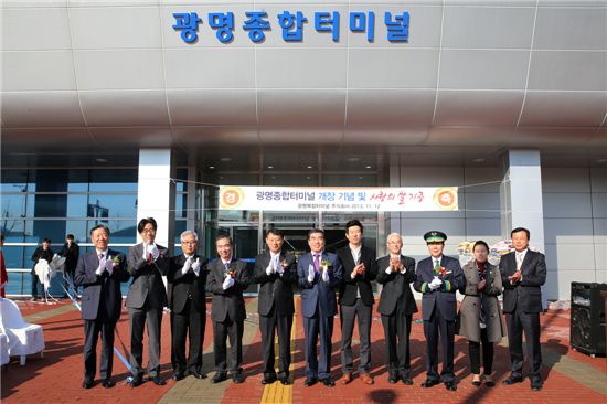 13일 철도공단에 따르면 KTX광명역 북쪽 철도시설 터(경기도 광명시 일직동 163-3번지)에 시외버스, 공항버스를 갈아탈 수 있는 광명종합터미널이 완공돼 12일 개장식을 갖고 영업에 들어갔다.