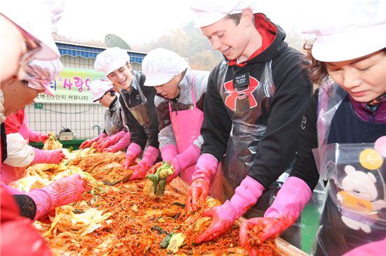[아시아경제 박종일 기자]금천구(구청장 차성수) 벽산2단지 커뮤니티 조직은 15일 벽산2단지 관리동건물 옥상에서 김장담그기 행사를 개최했다.