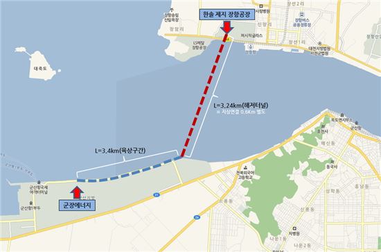 이번에 굴진을 완료한 해저터널은 군장에너지가 한솔제지에 증기와 탄산가스(CO)를 동시에 공급하기 위한 것으로 금강하구 해저 심도 35m에 직경 3m, 연장 3.24㎞ 규모다.