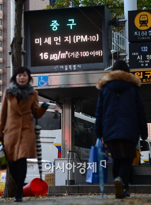 [아시아경제 백소아 기자] 가을비가 지나간 25일 서울 중구 서울광장 일대에 전광판에 미세먼지 농도가 정상치를 표시하고 있다.