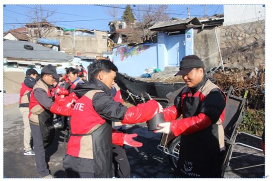 올해로 3년째를 맞은 '사랑의 연탄 나눔' 봉사활동에서 박창규 사장을 비롯해 임직원 200여명은 지난 28일, 29일 이틀간 서울과 부산에서 추운 날씨 속에서 연탄 4만 장을 기부하고 120여가구에 직접 연탄을 배달했다.