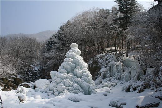 도 산림환경연구소는 겨울방학을 맞아 다양한 동절기 프로그램도 운영한다. 여름철 물놀이장을 전통 썰매장으로 개조해 이용객들이 안전하게 즐길 수 있도록 할 계획이다. 또 축령산 자락의 새하얀 눈꽃과 계곡에 만들어진 얼음 조형물도 설치했다.