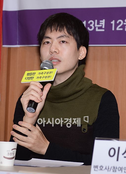 [아시아경제 정준영 기자] 김승환 레인보우팩토리 대표가 10일 오전 서울 종로구 통인동 참여연대 느티나무홀에서 열린 '성소수자 가족구성권 보장 및 혼인신고 .
