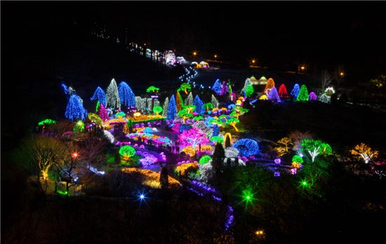 눈과 함께 하늘에서 사랑의 별빛이 우리나라의 자연과 만나 꽃, 나무 위에 오색별빛을 밝히는 ‘오색별빛정원전’은 지금까지 120여만명의 관람객들이 찾은 ‘대한민국 대표 겨울 빛 축제’로 꼽힌다.