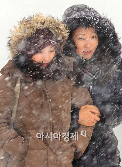 [아시아경제 최우창 기자]많은 눈이 내린 12일 서울 이화여자대학교 주변에서 학생들이 눈을 맞으며 걸어가고 있다.