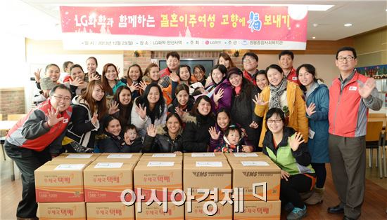 LG화학 여수공장 사회봉사단은 지난 23일 안산사택 기숙사식당에서 다문화여성 50명을 초청해 고국 부모님께 선물을 전달하는 ‘다문화여성 고국에 情 보내기’ 행사를 가졌다.