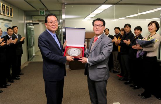 관세청공무원노동조합은 3일 오전 정부대전청사 청장실에서 관세청공무원노조 출범과 바람직한 노사관계 정립에 힘을 기울인 백 청장에게 감사패를 전했다.