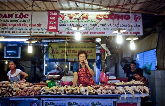 $pos="C";$title="베트남 하노이에 있는 한 시장의 닭고기 가게. 사진= 블룸버그";$txt="베트남 하노이에 있는 한 시장의 닭고기 가게. 사진= 블룸버그