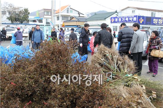 이날 행사에서 매실나무, 연산홍 등 5200여 그루의 묘목을 군민들에게 무료로 나눠줬다.