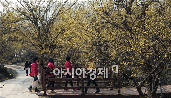 [아시아경제 이진택 기자 ]포근한 봄 날씨가 이어진 가운데 휴일인 16일 노랗게 물든 산동면 반곡마을을 찾은 상춘객들이 활짝 핀 산수유꽃을 보며 봄을 즐기고 .