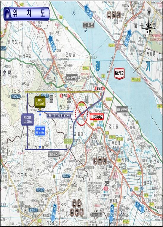 경기도 건설본부는 국지도 98호선 송포~인천간 도로확포장공사 구간 중 미 개통구간인 '나진교차로~인천시계(검단)' 구간 1.68㎞가 19일 추가 개통된다고 18일 밝혔다.