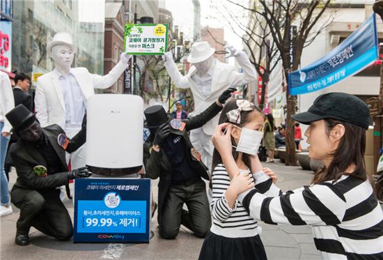 또 코웨이는 지난 2일 서울 명동에서 코웨이 미세먼지 제로 캠페인 이벤트를 진행하고 황사 시즌 외출 필수품인 마스크를 시민들에게 전달했다. 향후 코웨이는 3일(역삼 ·여의도·삼성 인근), 4일(강남역 인근), 5일(대학로 인근), 6일(명동 인근)에도 이벤트를 진행할 예정이다.