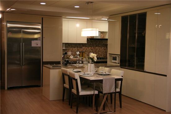이와함께 현관 바닥과 디딤돌을 천연석으로 마감했고 천정고도 2.4m로 기존 아파트 대비 10cm를 높여 개방감을 더했다. 복도 벽면과 거실 아트월도 천연석으로 마감한 데다 거실 이면을 개방해 조망권을 최대한 확보한 점도 특징으로 꼽힌다.