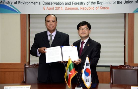 9일 산림청에 따르면 신원섭 산림청장은 8일 정부대전청사 회의실에서 방한한 윈 툰 미얀마 환경보전산림부 장관(수석대표) 등과 ‘제8차 한-미얀마 산림협력위원회’를 열고 우리나라 기업들의 미얀마 해외조림투자를 적극 돕기로 했다.