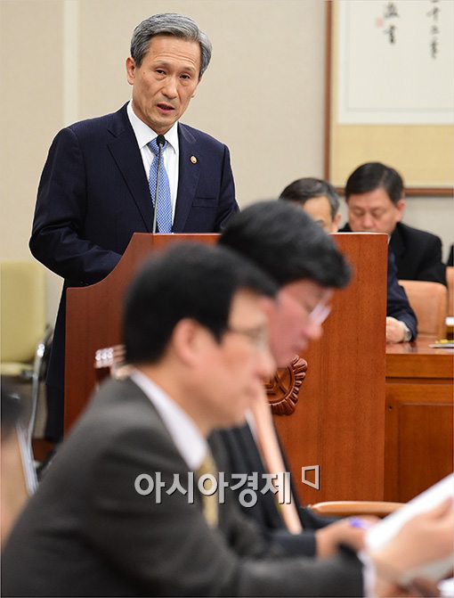 [아시아경제 윤동주 기자] 김관진 국방장관이 14일 서울 여의도 국회에서 열린 법제사법위원회 전체회의에 출석해 현안보고를 하고 있다.