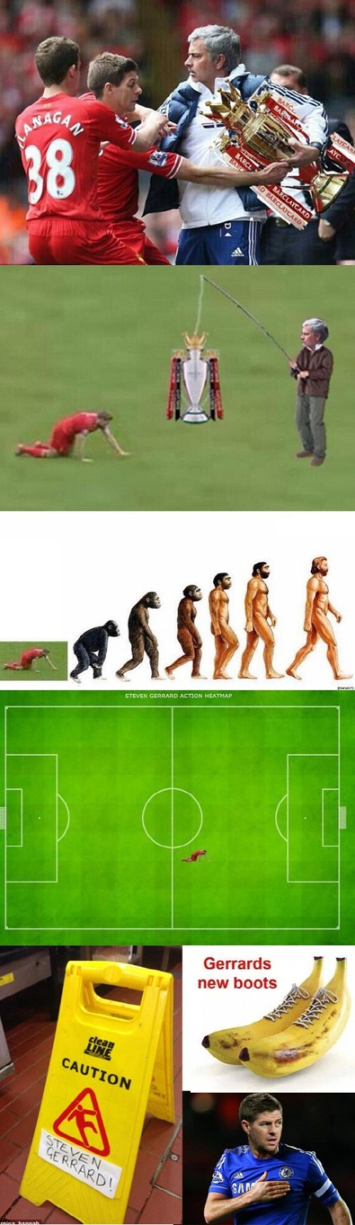 잉글랜드 프로축구 리버풀 주장 스티븐 제라드가 경기중 미끄러지는 실수를 저질러 온라인 상에서 굴욕을 당하고 있다.