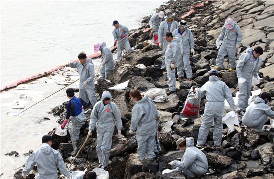 [연합뉴스]18일 오전 3시 30분께 경남 하동군 금성면 갈사리 섬진대교 인근 해상에 정박 중이던 폐유저장부선 D호(726t)에서 유성혼합물 2.