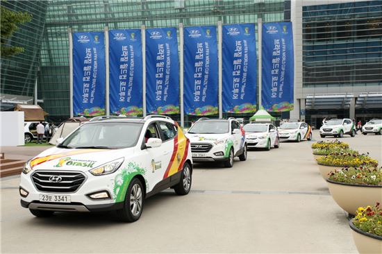 [아시아경제 최대열 기자]현대자동차는 브라질 월드컵을 맞아 8일부터 부산을 시작으로 로드투어를 진행하고 있다. 대구와 광주, 대전, 인천지역 길거리에서 카퍼레이드와 다양한 행사를 진행했으며 13일과 17일에는 최종 목적지인 서울의 유동인구 밀집지역을 예고 없이 순회하는 게릴라성 행사를 진행할 계획이라고 12일 전했다. 이번 로드투어 차량은 지난 4월 출시된 아반떼와 투싼ix 월드컵 에디션모델을 본선 진출국과 월드컵 엠블럼 등을 모티브로 디자인한 랩핑카다.