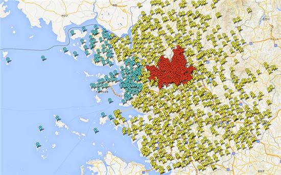 SK플래닛은 지난해 6월 서울 지역에 264개 기지국, 최근 도서지역을 포함한 인천 지역 131개 기지국에 관측소를 구축했으며 이어 오는 7월말까지 경기도 694개 기지국을 추가해 수도권 전 지역에 1~3km 간격의 1089개 기상관측소를 확보할 예정이다. 이를 통해 기상청 대비 5배 이상 조밀한 실시간 날씨 정보를 제공할 수 있게 된다.