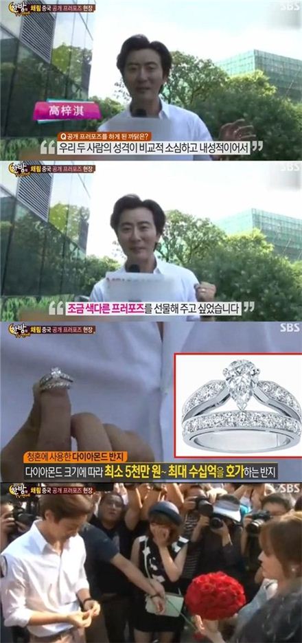 2일 방송된 SBS '한밤의 TV연예'에는 가오쯔치가 채림에게 공개 프러포즈를 하는 모습이 공개됐다.