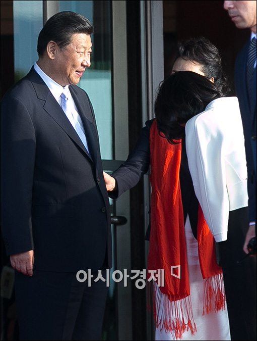 [아시아경제 윤동주 기자] 4일 서울 중구 신라호텔에서 열린 '한·중 경제통상협력포럼'에서 이부진 신라호텔 사장이 시진핑 중국 국가 주석을 배웅하고 있다.