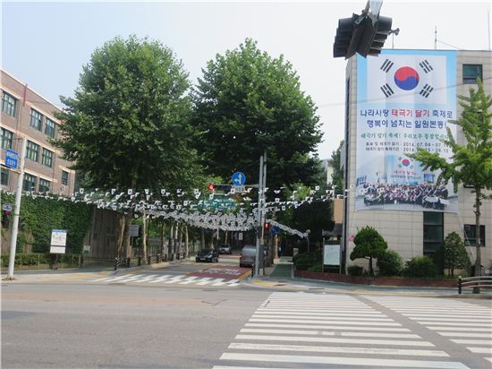 아울러 일원터널과 주민 센터 앞 도로 상공에 미니태극기를 줄에 매달아 만든 ‘태극기 터널’을 조성해 주민들의 동참을 이끌어 낼 전략이다.