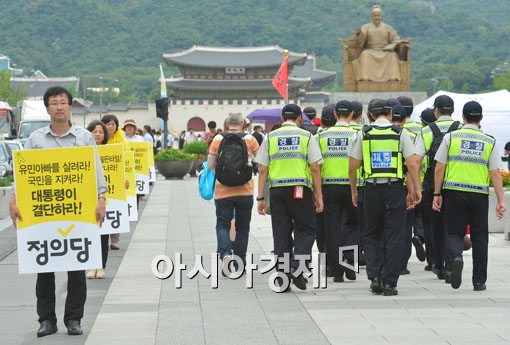 [아시아경제 백소아 기자]26일 서울 광화문광장에서 천호선 정의당 대표를 비롯한 관계자들이 '세월호 특별법, 응답하라 대통령!' 인간띠잇기 1인 시위를 진행하고 있다.