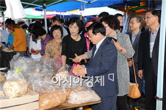 장성군이 추석명절을 맞아 지역경제 활성화에 적극 나섰다. 4일 군에 따르면 장성군 산하 공직자와 유관기관 임직원 350여명은 이날 황룡 5일시장을 찾아 곳곳을 돌며 과일, 건어물 등 제수용품을 구입했다고 밝혔다. 장보기에 참석한 유두석 군수는 시장 상인들을 만나 추석 명절 전 시장경기를 점검하고, 원산지 표시 준수 등을 당부하며 상인들을 격려했다. 한편, 유군수는“많은 군민들이 추석명절 음식과 선물 준비를 위해 덤이 있고 정이 있는 지역 내 전통시장을 이용해 주시기를 당부드린다”며 “지역경제와 전통시장 활성화를 위해 앞으로 더 많은 관심을 가지고 노력하겠다”고 말했다. 한편, 이번 ‘추석 장보기’ 행사에는 장성경찰서, 장성교육지원청 등 유관기관 임직원이 동참해 황룡시장이 모처럼 활기를 띠었다.