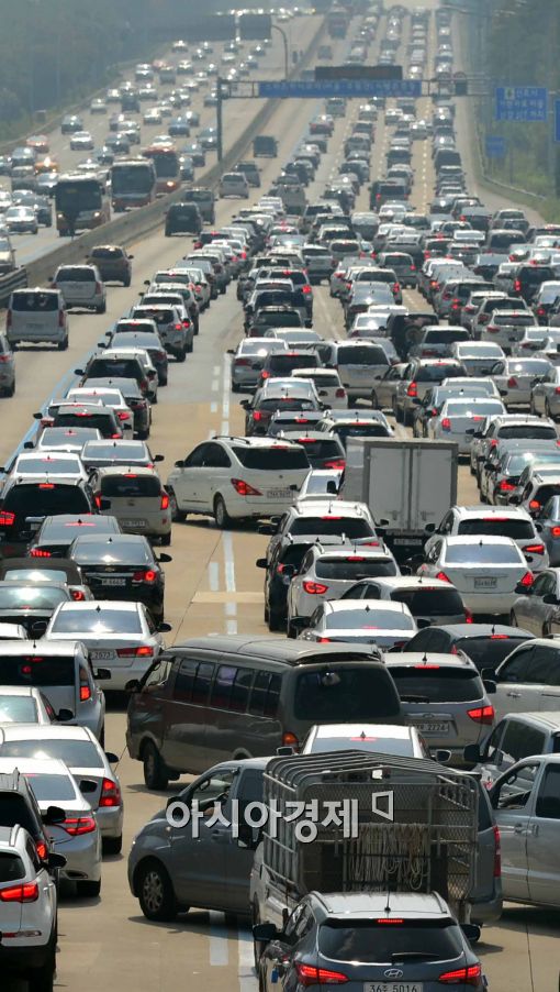 [성남=아시아경제 최우창 기자]민족 최대명절인 추석인 8일 경기도 성남시 궁내동 서울톨게이트에서 경부고속도로 상하행선 주변이 귀경 차량들로 붐비고 있다.