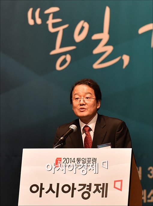 [아시아경제 윤동주 기자] 아시아경제신문과 아시아경제팍스TV 주최로 30일 서울 중구 대한상공회의소에서 열린 '2014 통일포럼'에서 남성욱 고려대학교 북한학과 교수가 '북한진출 성과와 과제'라는 주제로 발표를 하고 있다.