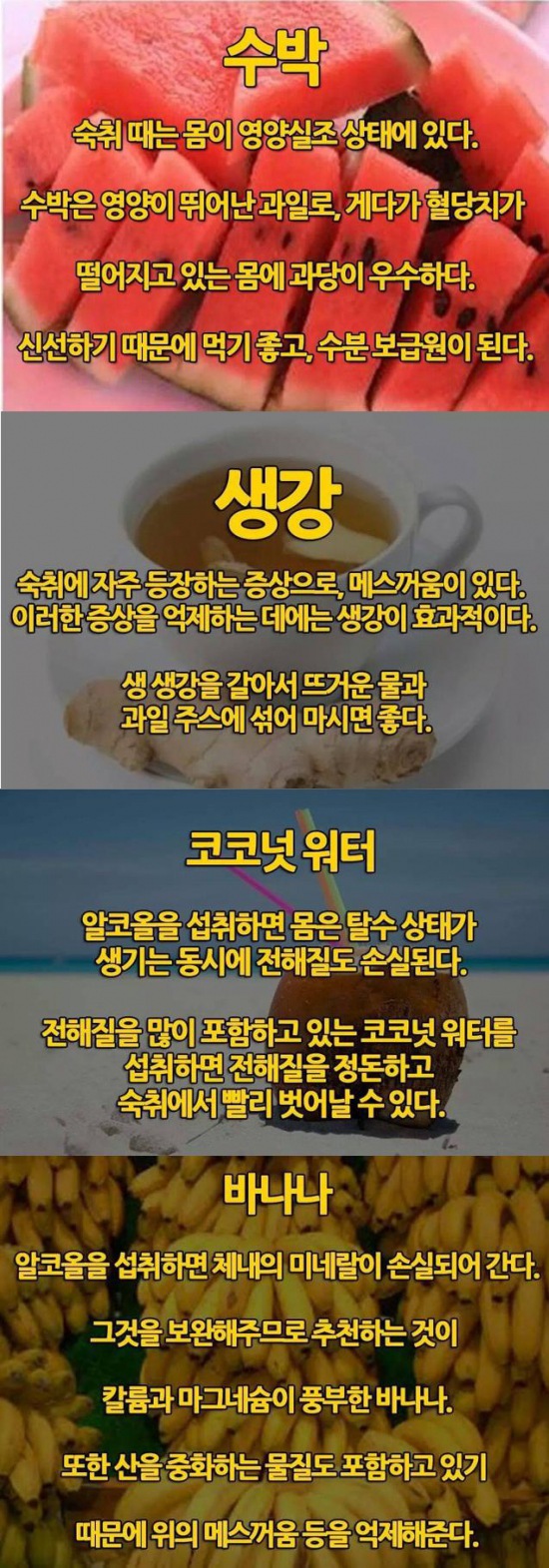 과음으로 숙취가 필요할 때 좋은 음식