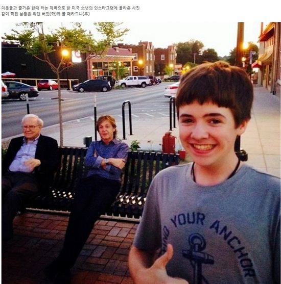 뒤에 계신 아저씨 두 사람은, 왼쪽이 워런 버핏, 오른쪽이 폴 매카트니입니다.