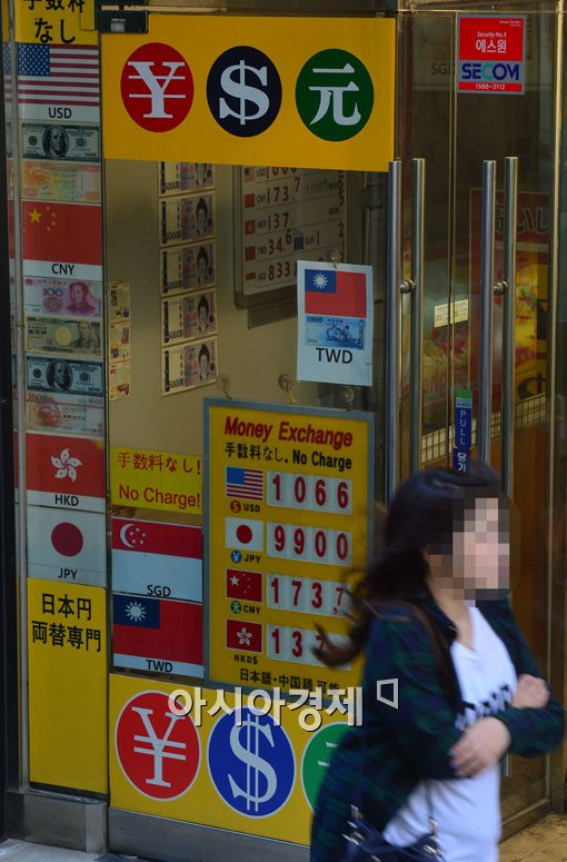 [아시아경제 백소아 기자] 13일 서울 중구 명동 쇼핑거리에 한집 걸러 한집으로 환전소가 영업을 하고 있다.