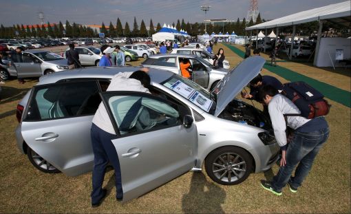 현대기아자동차는 15일 경기도 화성에 있는 기술연구소에서 자사차량과 경쟁업체의 차량까지 비교해 볼 수 있도록 전시한 연구개발(R&D)모터쇼를 시작했다. 나흘간 열리는 이번 행사에는 현대기아차의 부품협력사 직원과 연구원들이 다수 참여하며 각 업체의 신기술을 전시하고 세미나를 하는 테크데이도 같이 열린다. 첫날 행사에 참석한 현대기아차 연구원과 협력업체 직원들이 차를 살펴보고 있다.