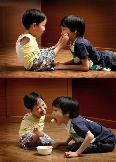 왼쪽에 있는 아이가 형이고 오른쪽이 동생인데, 자기보다 더 크지만 지적장애를 가진 동생을 몸이 불편한 형이 돌봐주고 있습니다.