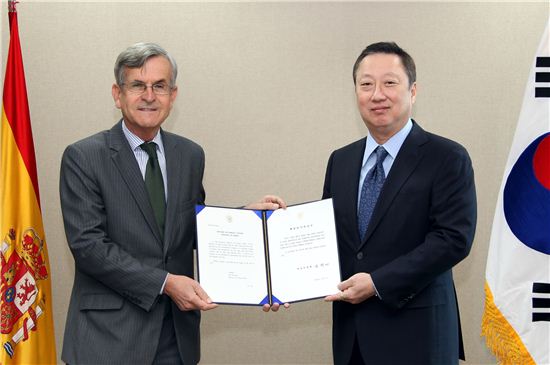 박 회장은 28일 곤살로 오르티스 주한 스페인 대사로부터 명예영사 위촉장을 받았다.